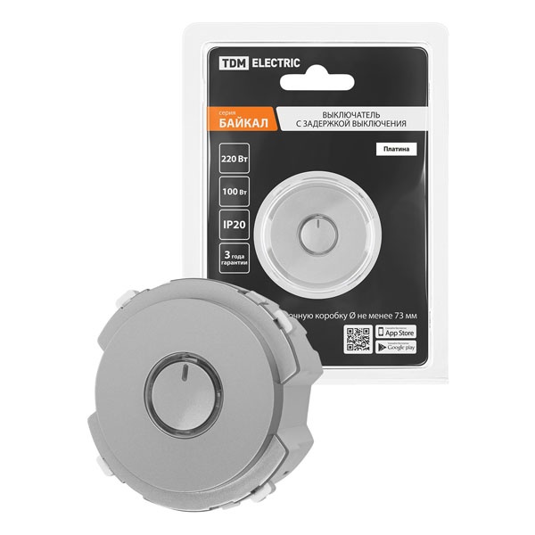 Встраиваемый одноклавишный выключатель с задержкой отключения Байкал, цвет платина SQ1819-0345