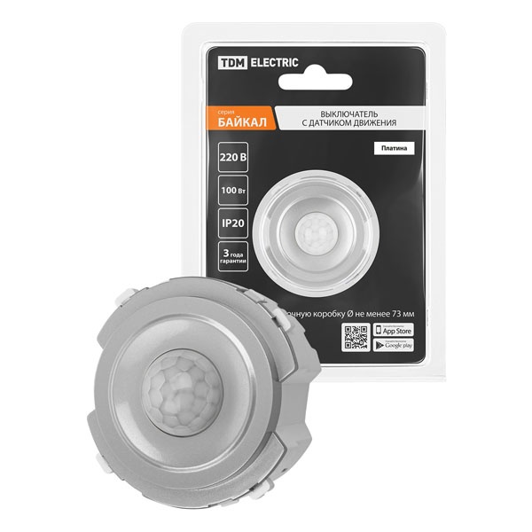 Детектор движения для управления освещением мощностью 100 Ватт, скрытой установки цвет платина SQ1819-0346