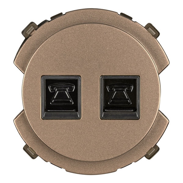 Слаботочная двухпостовая розетка с телефонным разъемом RJ11 скрытой установки, цвет бронза SQ1819-0415