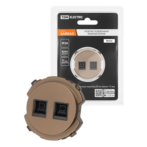 Двухпостовая слаботочная сетевая розетка с разъемом RJ45 скрытой установки, цвет бронза SQ1819-0416