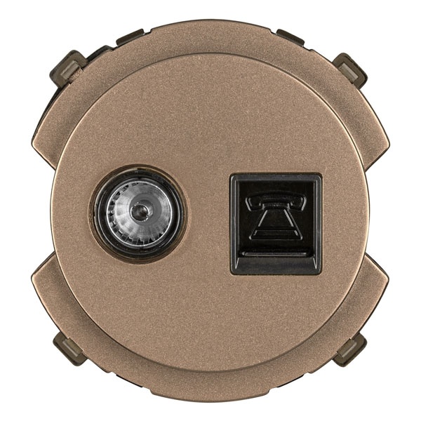 Встраиваемая комбинированная розетка с телефонным и антенным разъемом, цвет бронза SQ1819-0418