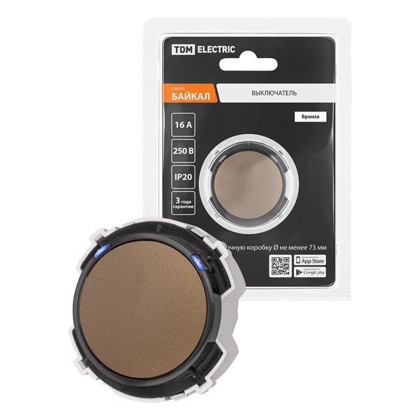 Встраиваемый 1-клавишный выключатель Байкал кнопочного типа, цвет бронза SQ1819-0422