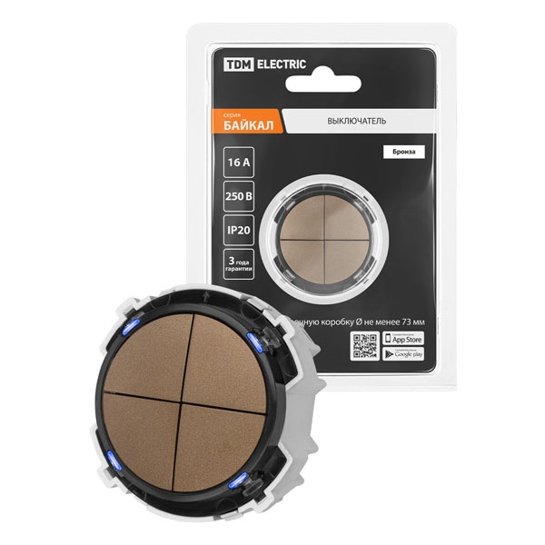 Встраиваемый 4-клавишный проходной выключатель Байкал кнопочного типа, цвет бронза SQ1819-0429