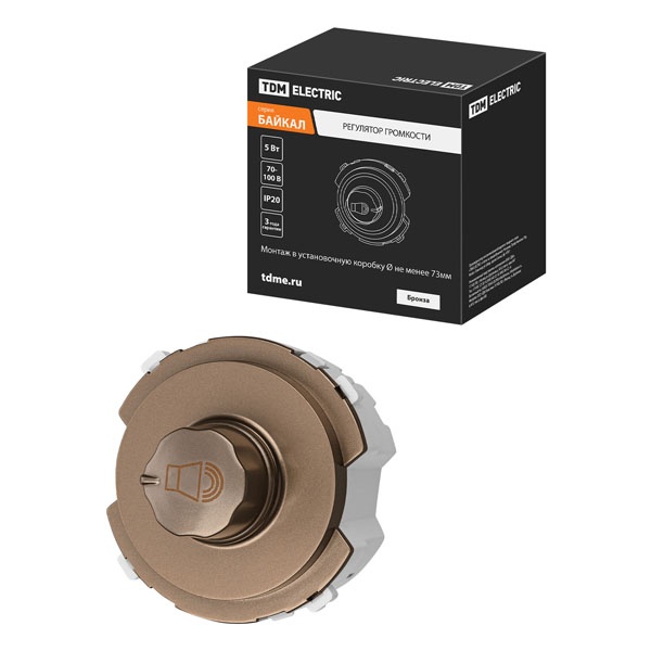 Встраиваемый поворотный регулятор уровня громкости Байкал, цвет бронза SQ1819-0443