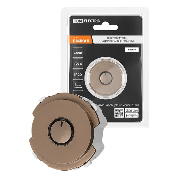 Встраиваемый одноклавишный выключатель с задержкой отключения Байкал, цвет Бронза SQ1819-0445