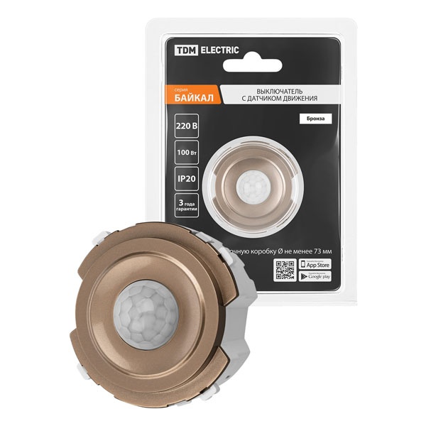 Детектор движения для управления освещением мощностью 100 Ватт, скрытой установки цвет бронза SQ1819-0446
