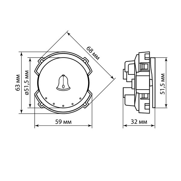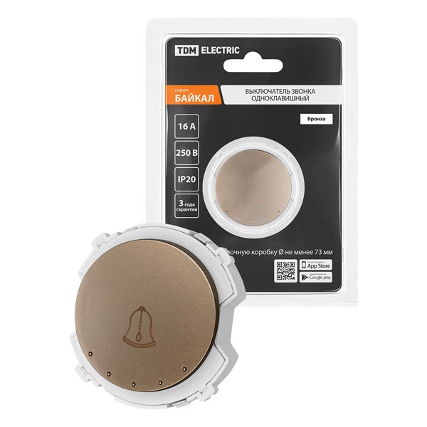 Встраиваемый 1-клавишный выключатель Байкал кнопочного типа с пиктограммой звонка, цвет бронза SQ1819-0453