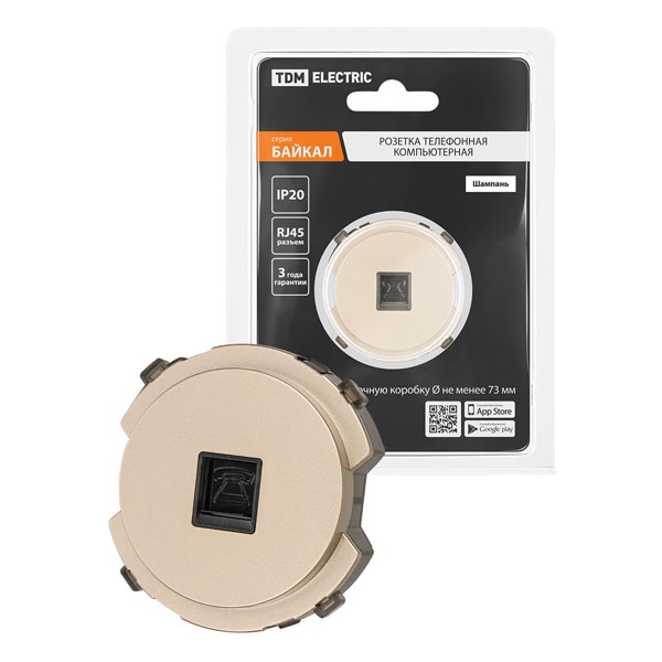 Слаботочная однопостовая розетка с телефонным разъемом RJ11 скрытой установки, цвет шампань SQ1819-0513