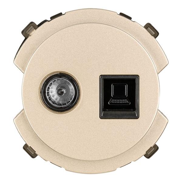 Встраиваемая комбинированная розетка с сетевым и антенным разъемом, цвет шампань SQ1819-0519