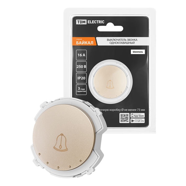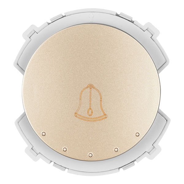 Встраиваемый 1-клавишный выключатель Байкал кнопочного типа с пиктограммой звонка, цвет шампань SQ1819-0553