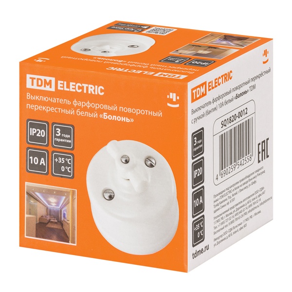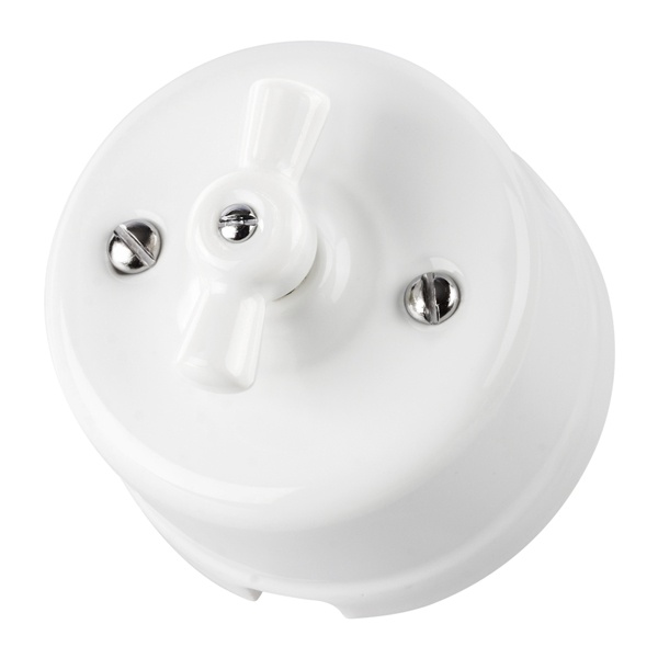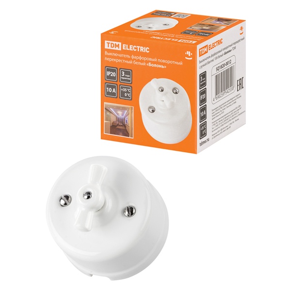 Настенный одноклавишный электрический выключатель промежуточный поворотный ретро белый ТДМ IP20 открытой установки SQ1820-0012