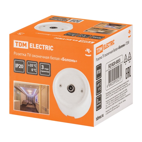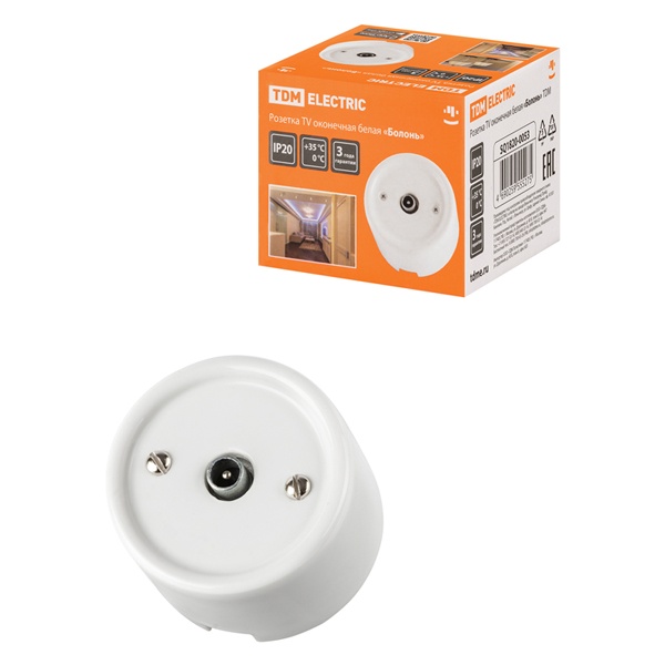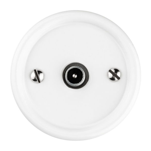 Внешняя белая ТВ-антенная розетка ретро одинарная ТДМ под телевизор открытой установки на стену SQ1820-0053