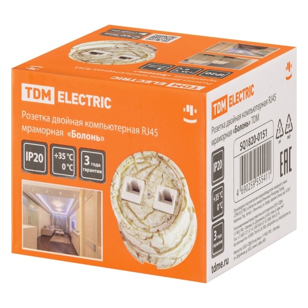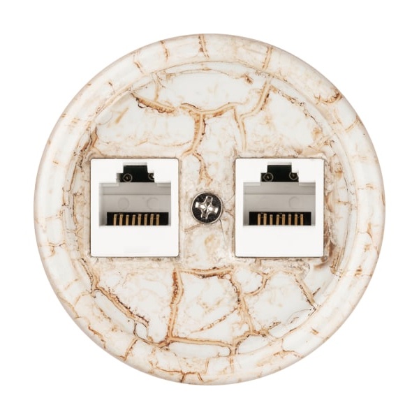 Внешняя сетевая мраморная ретро розетка RJ-45 UTP двойная ТДМ для интернета открытой установки на стену SQ1820-0151