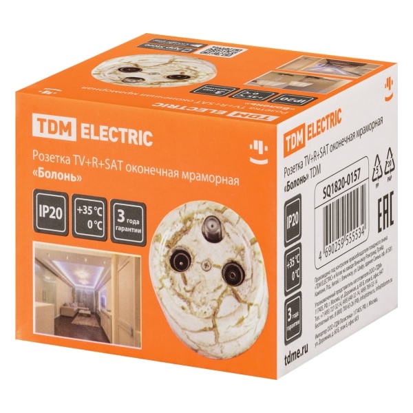 Механизм оконечной, ретро, антенной розетки R/TV-SAT, из фарфора и пластика, открытой установки, мраморного цвета, ТДМ Болонь SQ1820-0157