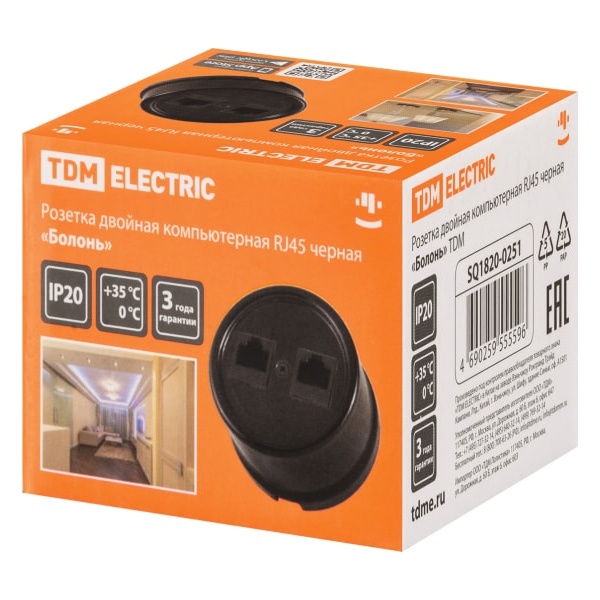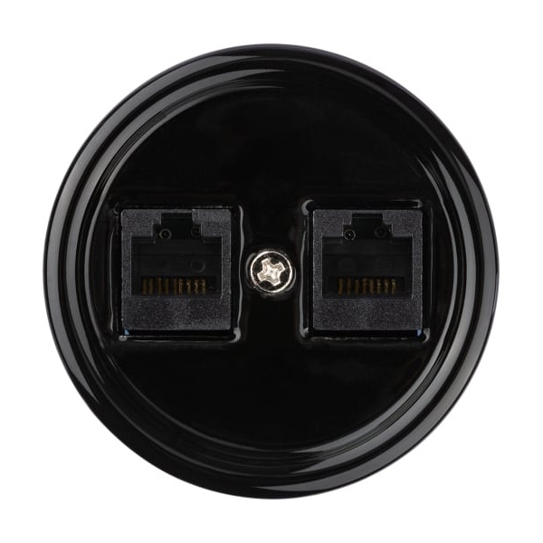 Внешняя сетевая черная ретро розетка RJ-45 UTP двойная ТДМ для интернета открытой установки на стену SQ1820-0251
