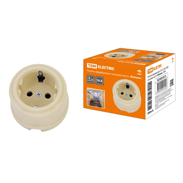 Электрическая внешняя бежевая ретро розетка ТДМ одинарная силовая 16А электросети 220В IP20 открытой установки на стену SQ1820-0312
