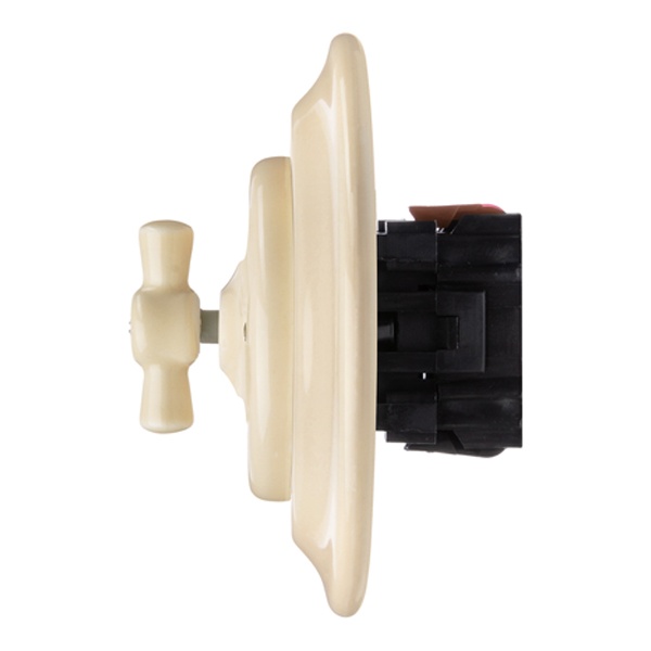 Фарфоровый, ретро, одноклавишный проходной выключатель с поворотным механизмом скрытой установки, бежевого цвета, ТДМ серия Болонь SQ1820-0316