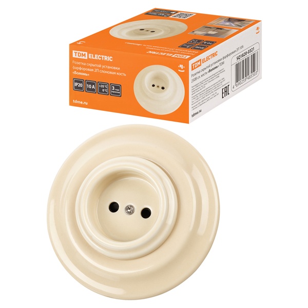 Розетка TDM "Болонь" с бежевым фарфоровым корпусом прекрасно впишется в разнообразные интерьерные стили, придавая помещению изысканность и стиль. Ее дизайн и цветовая гамма делают ее отличным выбором для дома, офиса или других мест, где требуется надежное и эстетичное электрическое соединение.