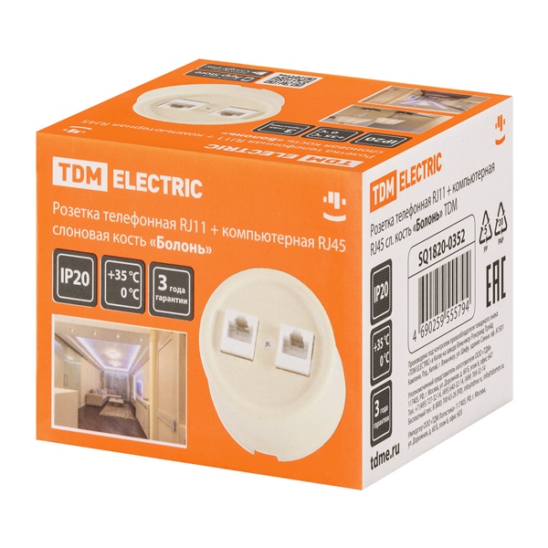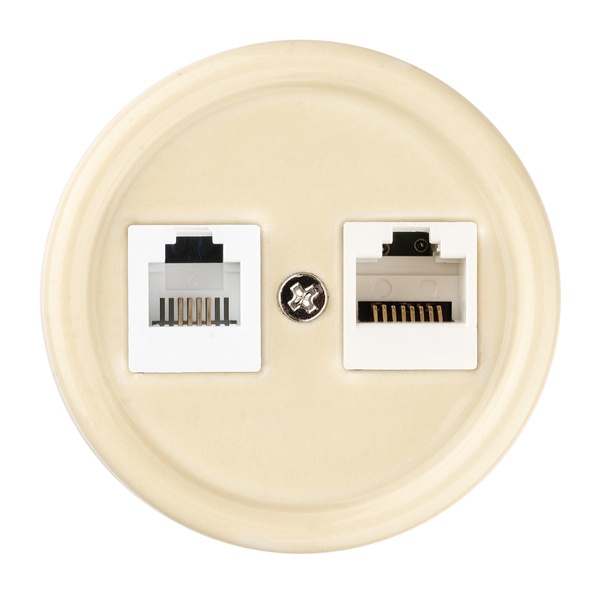 Внешняя бежевая ретро розетка RJ-11 и RJ-45 ТДМ для телефонии и интернета открытой установки на стену SQ1820-0352