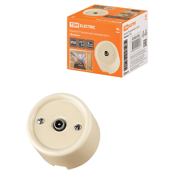 Внешняя бежевая ТВ-антенная розетка ретро одинарная ТДМ под телевизор открытой установки на стену SQ1820-0354