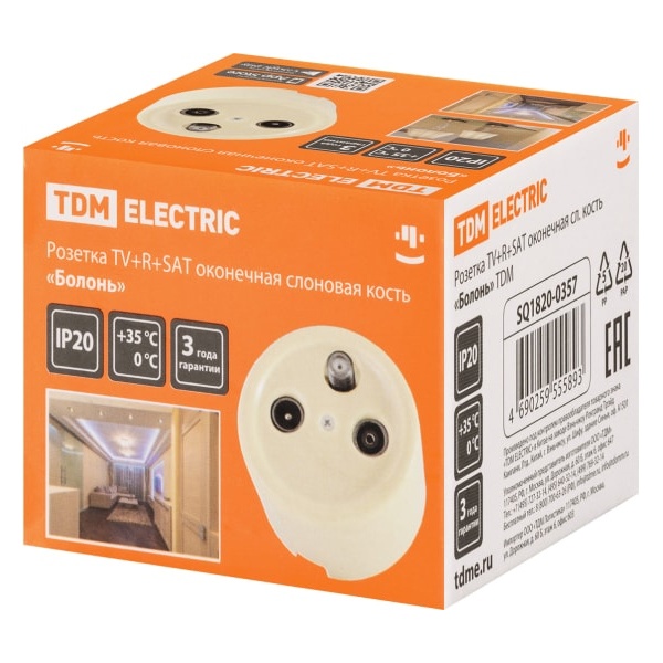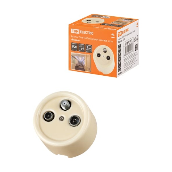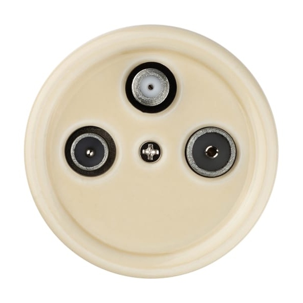 Механизм оконечной, ретро, антенной розетки R/TV-SAT, из фарфора и пластика, открытой установки, бежевого цвета, ТДМ Болонь SQ1820-0357