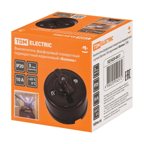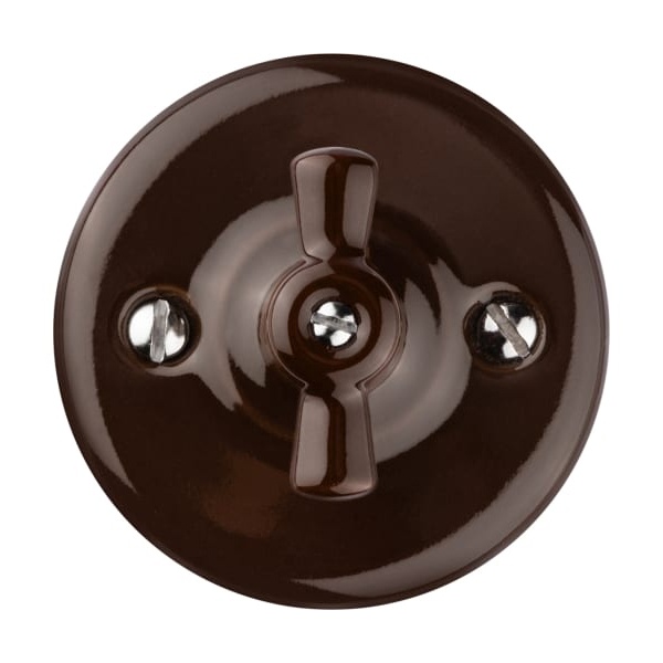 Настенный двухклавишный электрический переключатель с двух мест поворотный ретро коричневый ТДМ IP20 открытой установки SQ1820-0417