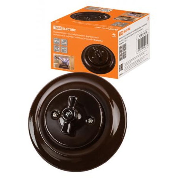 Фарфоровый, ретро, одноклавишный крестовый выключатель с поворотным механизмом скрытой установки, коричневого цвета, ТДМ серия Болонь SQ1820-0418