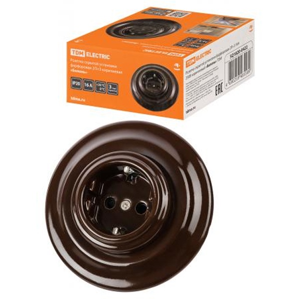 Розетка TDM "Болонь" с фарфоровым корпусом коричневого цвета прекрасно впишется в разнообразные интерьерные стили, придавая помещению изысканность и стиль. Ее дизайн и цветовая гамма делают ее отличным выбором для дома, офиса или других мест, где требуется надежное и эстетичное электрическое соединение.