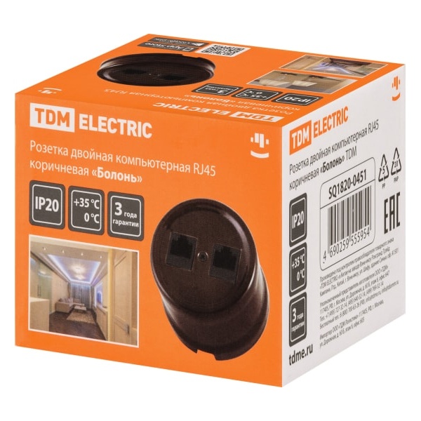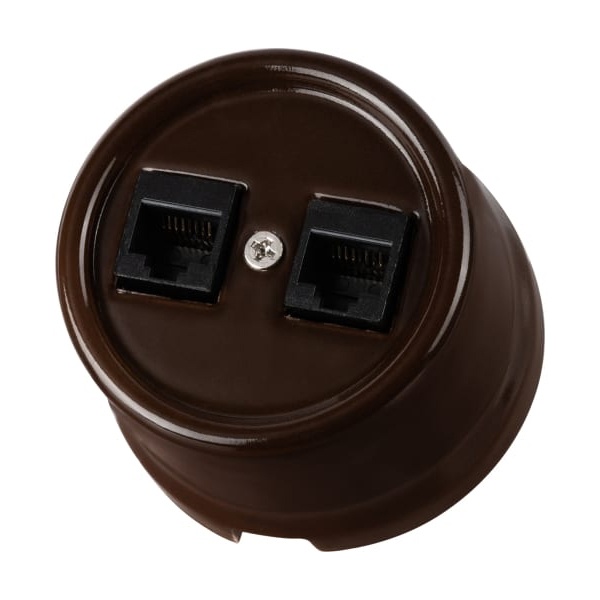Внешняя сетевая коричневая ретро розетка RJ-45 UTP двойная ТДМ для интернета открытой установки на стену SQ1820-0451