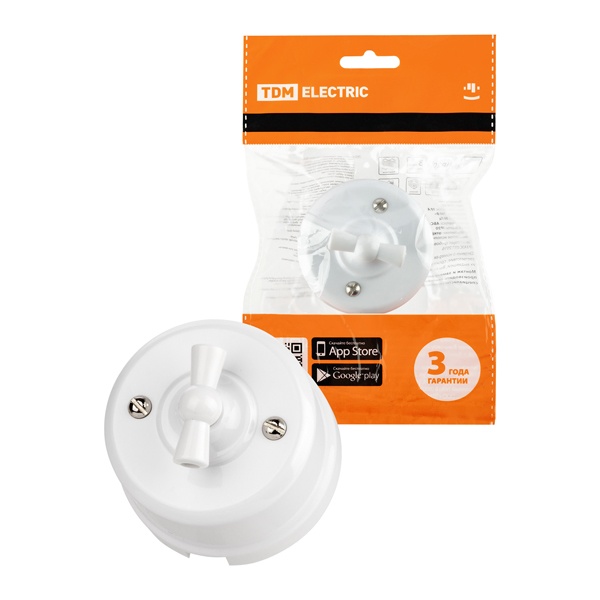 Настенный двухклавишный электрический выключатель ретро белый ТДМ IP20 открытой установки SQ1820-1006