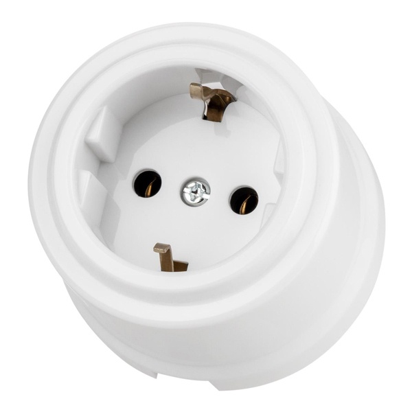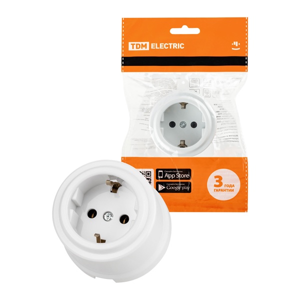 Электрическая внешняя белая ретро розетка ТДМ одинарная силовая 16А электросети 220В IP20 открытой установки на стену SQ1820-1012