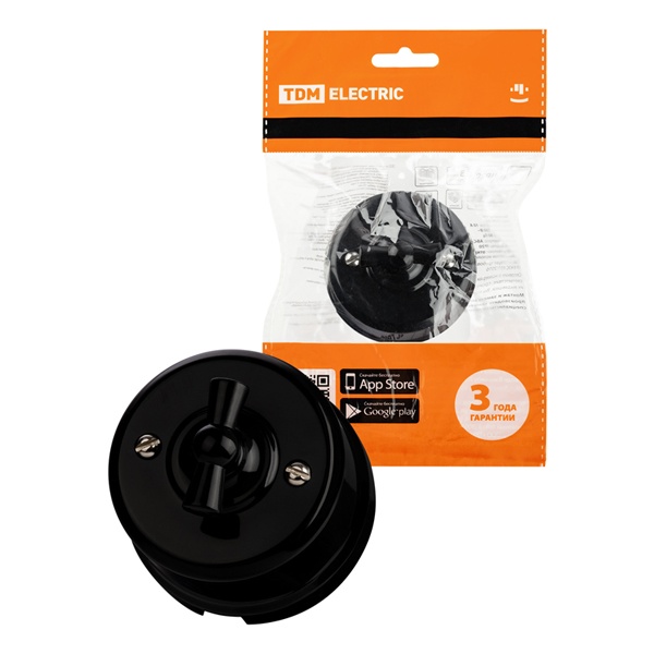 Настенный одноклавишный электрический выключатель ретро черный ТДМ IP20 открытой установки SQ1820-1205