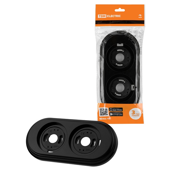 Двухпостовое декоративное обрамление черного цвета для ретро электроустановочных изделий ТДМ Виви SQ1820-1290
