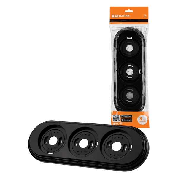Трехпостовое декоративное обрамление черного цвета для ретро электроустановочных изделий ТДМ Виви SQ1820-1291