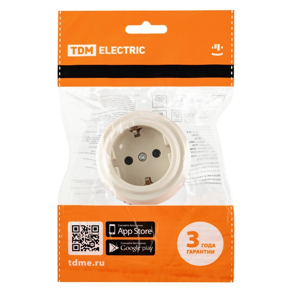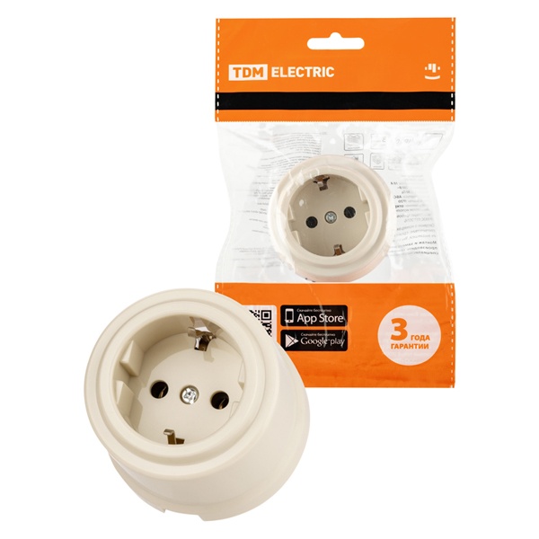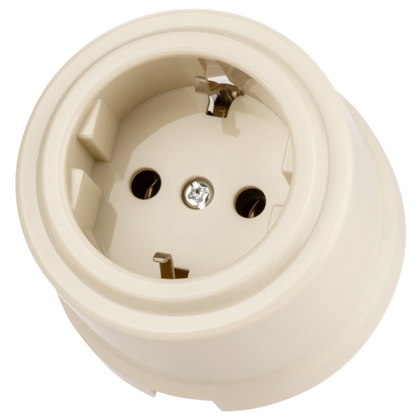 Электрическая внешняя бежевая ретро розетка ТДМ одинарная силовая 16А электросети 220В IP20 открытой установки на стену SQ1820-1317