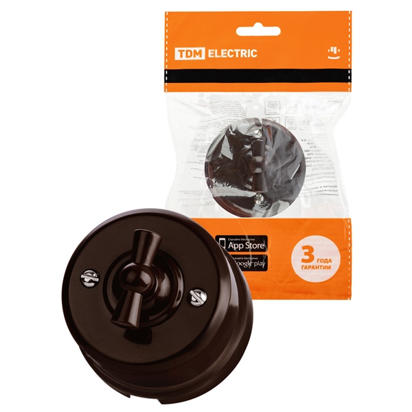 Настенный двухклавишный электрический выключатель ретро коричневый ТДМ IP20 открытой установки SQ1820-1406