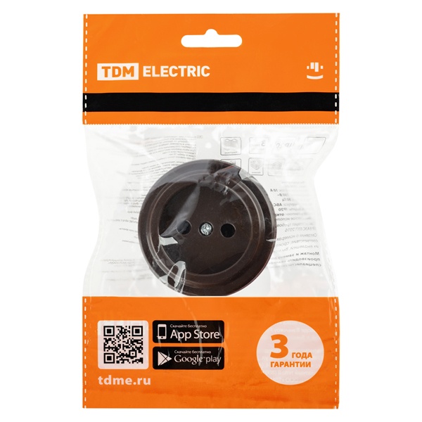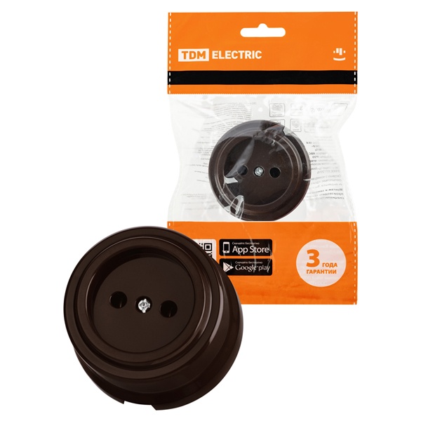 Электрическая внешняя коричневая ретро розетка ТДМ одинарная силовая 16А электросети 220В IP20 открытой установки на стену SQ1820-1416