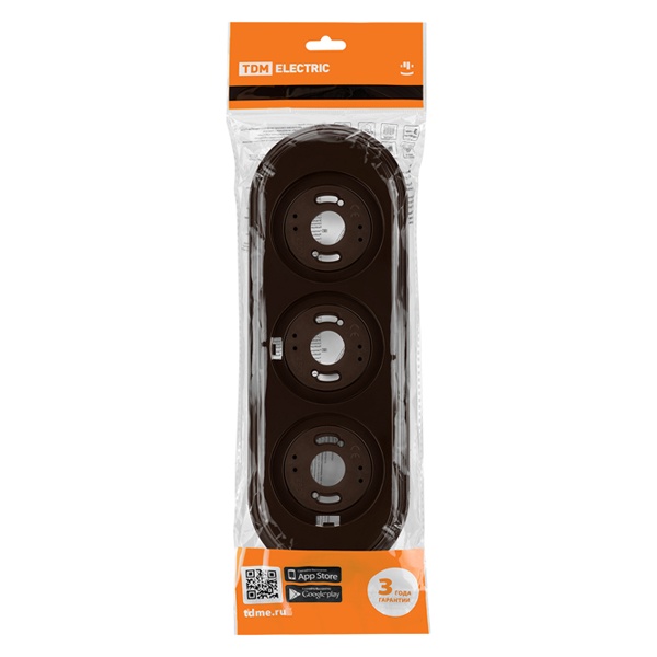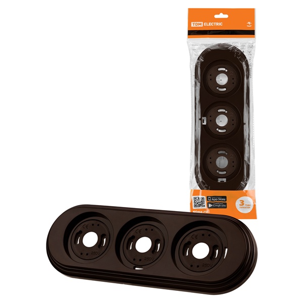 Трехпостовое декоративное обрамление коричневого цвета для ретро электроустановочных изделий ТДМ Виви SQ1820-1491