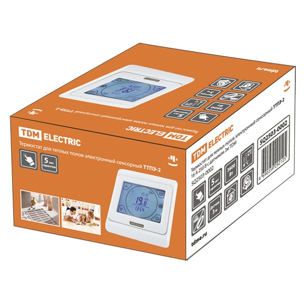SQ2503-0001 Термостат для теплых полов электронный TDM ТТПЭ-1 16А 250В белый с датчиком 3м фото 1