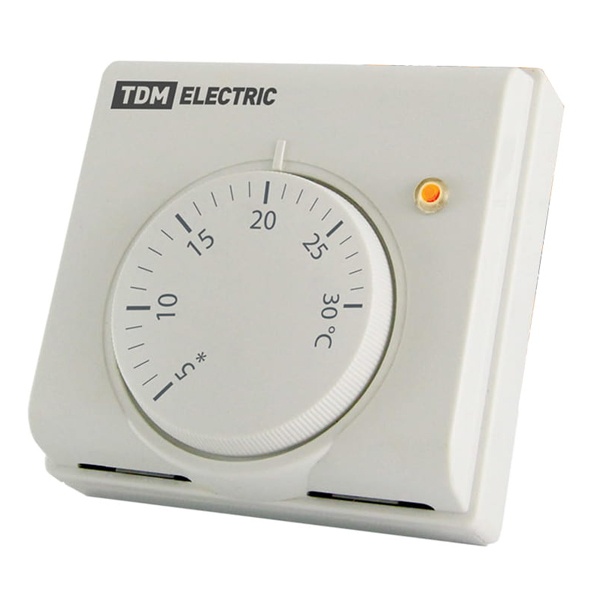 Терморегулятор механический открытого монтажа ТДМ Электрик, с максимальной нагрузкой до 2200 Ватт, цвет белый SQ2503-0009