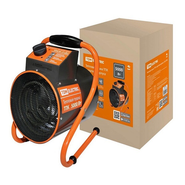 Тепловая пушка ТПК в круглом корпусе 5 кВт TDM поставляется в комплекте со шнуром питания длиной 1,2 м., без вилки.