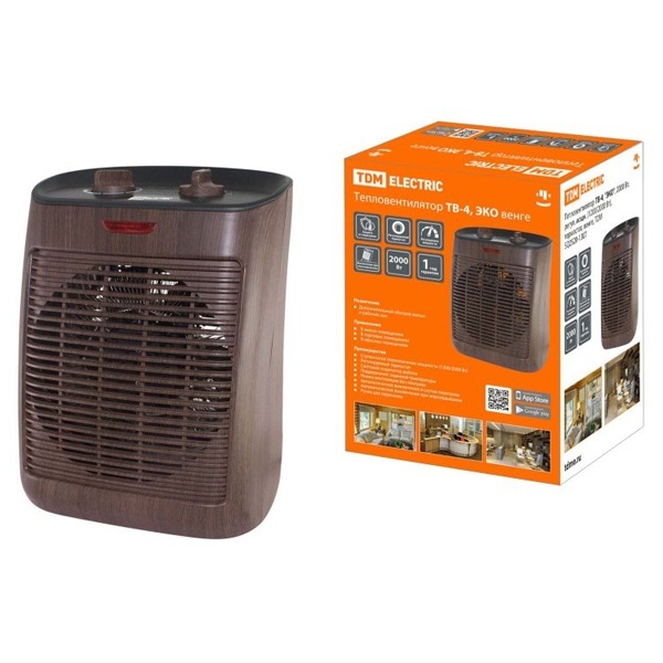 SQ2520-1307 Тепловентилятор ТВ-4, ЭКО, 2000 Вт, регулятор мощности (1200/2000 Вт), термостат, венге, TDM