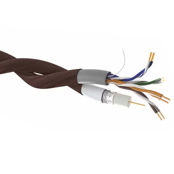Комбинированный ретро провод TV + Internet отечественной компании РЭМЗ, выпускающей продукцию под торговой маркой TDM Electric, применяется для создания подключения к сети интернет и телевизионному оборудованию. Коаксиальный кабель разработан для передачи сигналов кабельного, спутникового, эфирного телевидения, а также для подключения к системе видеонаблюдения. Его конструкция предусматривает: центральный проводник в виде однопроволочной жилы, диэлектрик из физически вспененного полиэтилена, экран из фольги и внешний проводник из алюминиевой оплетки. Витая пара используется для монтажа в зданиях, сооружениях с параметрами передачи до 1000 Мбит/с, в системе абонентского доступа, а также на участках от коммутационного оборудования до информационных розеток рабочих мест. Она состоит из 8 однопроволочных жил в изоляции из полиэтилена повышенной плотности. Ретро провод помещен в оболочку их ПВХ-пластиката. Внешняя оплетка имеет коричневый цвет из самозатухающей полиэфирной нити. Провод предназначен для использования исключительно внутри здания, хорошо подходит для деревянных домов, а также для дизайна в стилистике ретро. Поставляется бухтой длиной 45 м. Срок службы составляет не менее 15 лет.