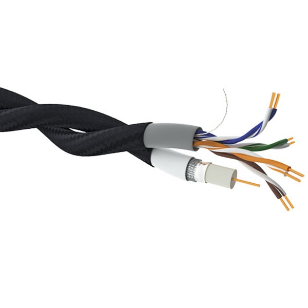 Информационный ретро провод TV + Internet отечественной компании РЭМЗ, выпускающей продукцию под торговой маркой TDM Electric, применяется для создания подключения к сети интернет и телевизионному оборудованию. Внешняя оплетка имеет черный цвет из самозатухающей полиэфирной нити. Комбинированный провод предназначен для использования исключительно внутри здания, хорошо подходит для деревянных домов, а также для дизайна в стилистике ретро. Он является безопасным и оригинально смотрится в интерьере. Поставляется бухтой длиной 45 м. Провод включает в себя коаксиальный кабель и витую пару. Коаксиальный кабель разработан для передачи сигналов кабельного, спутникового, эфирного телевидения, а также для подключения к системе видеонаблюдения. Его конструкция предусматривает центральный проводник в виде однопроволочной жилы, диэлектрик из физически вспененного полиэтилена, экран из фольги и внешний проводник из алюминиевой оплетки. Витая пара используется для монтажа в зданиях, сооружениях с параметрами передачи до 1000 Мбит/с, в системе абонентского доступа, а также на участках от коммутационного оборудования до информационных розеток рабочих мест. Она состоит из однопроволочной жилы и изоляции из полиэтилена повышенной плотности. Ретро провод помещен в оболочку их ПВХ-пластиката. Срок службы составляет не менее 15 лет.