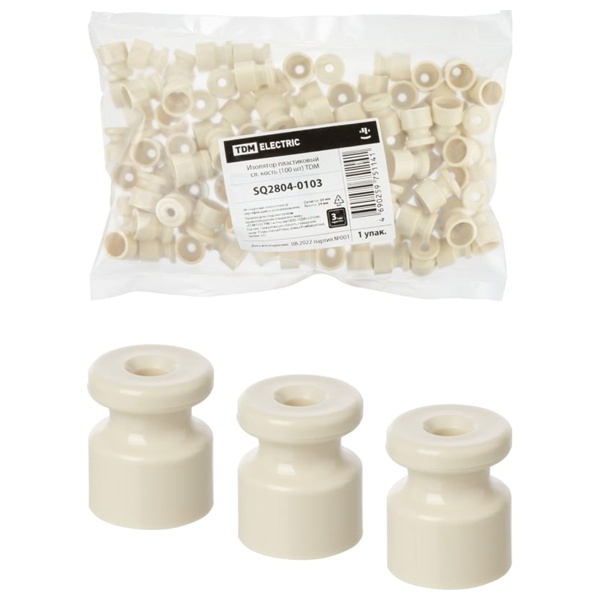 Пластиковый изолятор для ретро проводки, 100 штук, цвет бежевый, ТДМ. SQ2804-0103