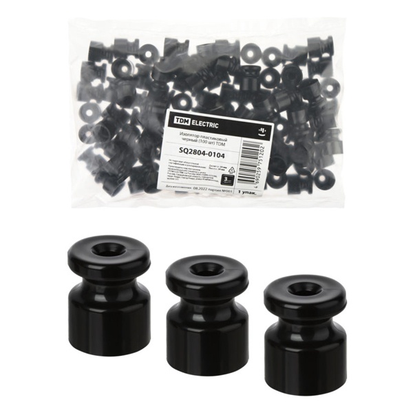 Пластиковый изолятор для ретро проводки, 100 штук, цвет черный, ТДМ. SQ2804-0104