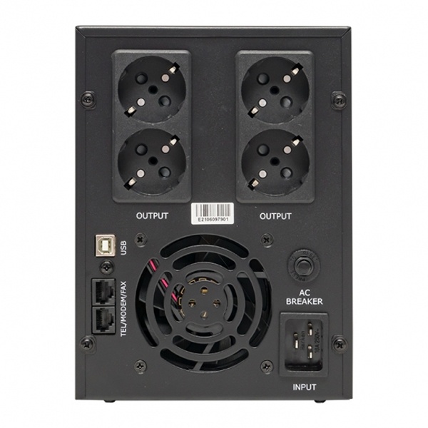 Микропроцессорное управление.Полная синхронизация выходного напряжения при переключении на работу от батарей. Широкий диапазон входного напряжения.Встроенный стабилизатор.Аппроксимированная синусоида при работе от аккумуляторных батарей.Функция холодного старта (запуск ИБП при отсутствии напряжения на входе).Совместимость с генератором любого типа.Автоматический заряд батарей.Полная защита от повышенного или пониженного напряжения. Защита от скачков и просадок напряжения сети электропитания Не создает электромагнитных помех. Автоматическая диагностика при запуске ИБП.Уровень нагрузки ИБП должен составлять не менее 5% от номинальной мощности источника. Возможность удаленного мониторинга режимов работы ИБП.Характеристики:- Номинальная мощность: 3000 ВА