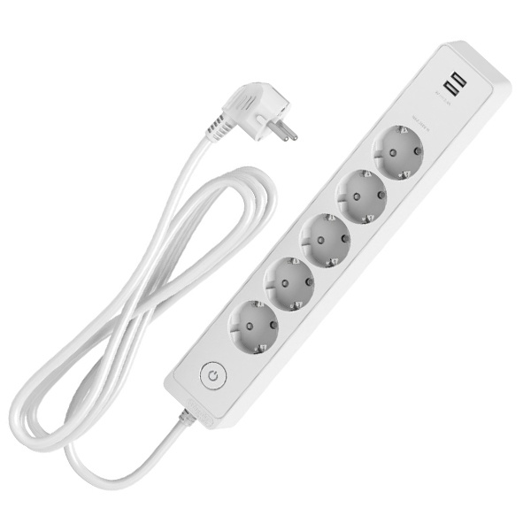 Колодка удлинителя оснащена пятью силовыми и двумя USB разъемами. Если первые предназначены для подключения основного электрооборудования, то вторые – для зарядки всевозможных мобильных устройств, характеристики которых соответствуют токовым показателям на выходе – 2,4 Ампера.