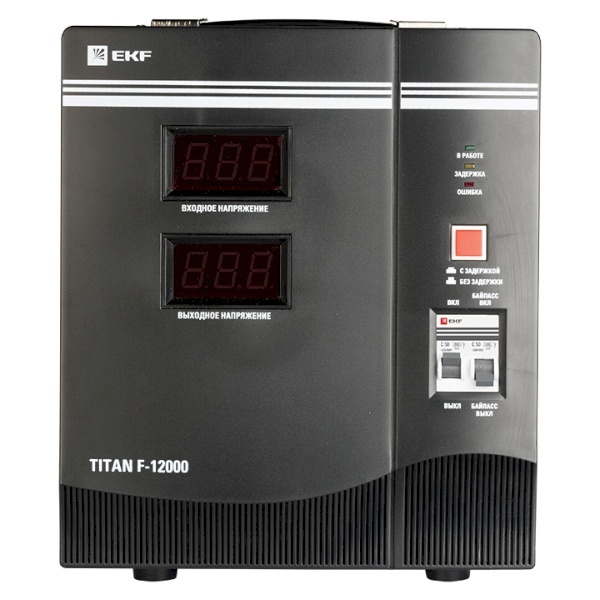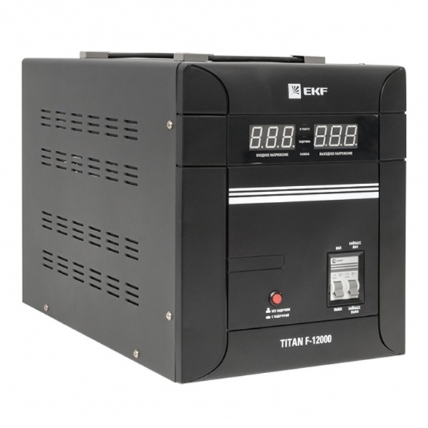 Стабилизатор однофазного электрического напряжения релейного типа мощностью 12000ВА, напольного исполнения, ЕКФ серии Титан. stab-f-12000