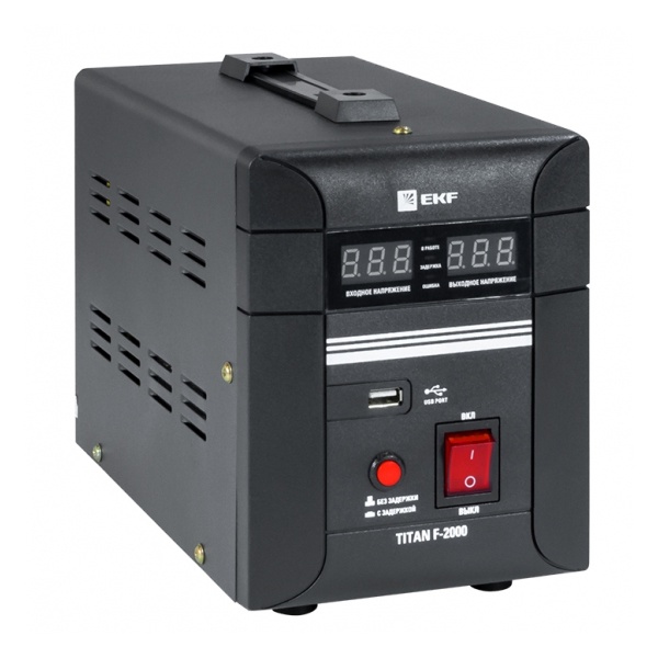Стабилизатор однофазного электрического напряжения релейного типа мощностью 2000ВА, напольного исполнения, ЕКФ серии Титан. stab-f-2000
